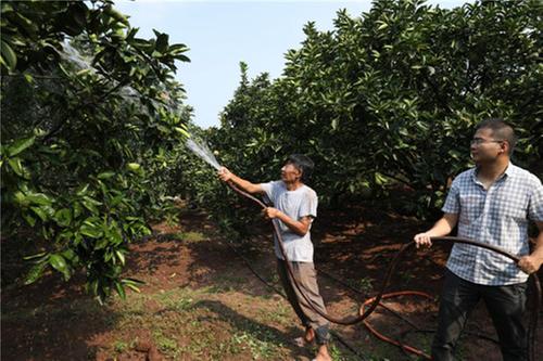 “年紀大了歇一會嘛,我來幫你繼續(xù)澆。”“我來給你拉管子。”……近日,廣安市廣安區(qū)龍安鄉(xiāng)群策村,村干部和村民一大早就到龍安柚母本園、楊家老院子、東山橋等地抽水澆林、積極抗旱。綠葉掩映中,村民互相幫襯,為柚子樹澆水,在大家的共同努力下,一片柚子林很快澆灌完畢。