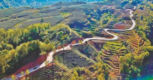 南江縣下兩鎮(zhèn)東埡村,新修的公路貫穿茶園