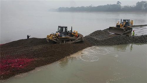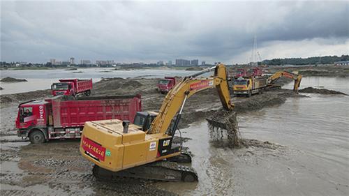 10月11日上午11時(shí)38分,在眉山市青神縣虎渡溪航電樞紐工程的施工現(xiàn)場(chǎng),隨著相關(guān)負(fù)責(zé)人一聲令下,兩輛挖掘機(jī)相對(duì)而行,將泥土圍合,很快填滿了該工程一期一枯圍堰的缺口。