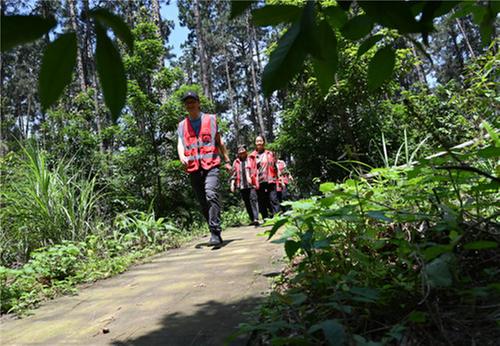 6月12日,內(nèi)江市東興區(qū)郭北鎮(zhèn)長壩村,護林員在長江森林公園常態(tài)化開展森林巡防。