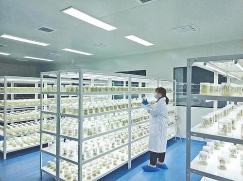 布拖馬鈴薯科技小院工作人員觀察組培苗長(zhǎng)勢(shì)情況。