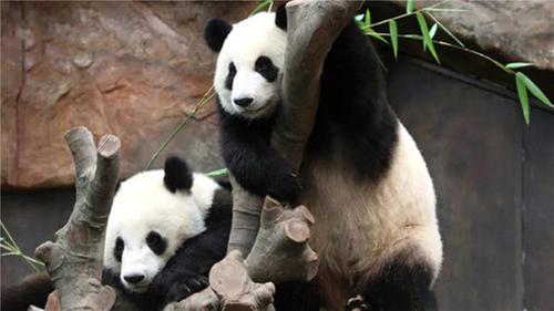 憨態(tài)可掬的大熊貓在嬉戲