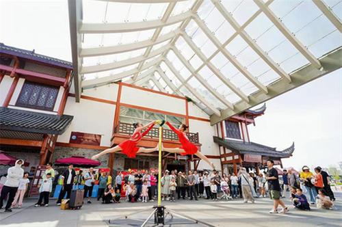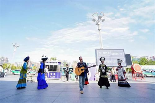 峨眉武術(shù)剛勁有力,功夫茶藝行云流水,小丑互動(dòng)妙趣橫生......5月1日,在樂山大佛景區(qū)北大門,排隊(duì)游客驚喜邂逅快閃表演,演員們與游客熱情互動(dòng),贈(zèng)送文創(chuàng)扇子、米花糖等特色小禮品。瀘州游客王女士說:“沒想到排隊(duì)的時(shí)間還有這么好的體驗(yàn),不僅有表演,還有互動(dòng),還會(huì)贈(zèng)送一些小禮品,現(xiàn)場氛圍非常好。”據(jù)了解,4月30日至5月5日,樂山高鐵站、大佛北門廣場、嘉州長卷、上中順特色街區(qū)、張公橋美食街等地將同步開展形式多樣的文化快閃,涵蓋彝族服飾巡游、潮舞快閃、非遺展演等豐富內(nèi)容,讓游客在游覽之余沉浸式體驗(yàn)樂山的人文魅力。