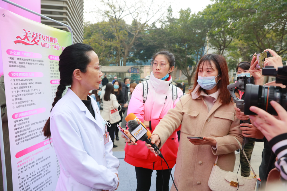 3月5日上午,由中國(guó)癌癥基金會(huì)主辦,四川省腫瘤醫(yī)院(四川省癌癥防治中心)聯(lián)合省總工會(huì)、省困難職工幫扶基金會(huì)、武侯區(qū)疾病預(yù)防控制中心,以及8家市級(jí)癌癥防治中心(成都市第七人民醫(yī)院、德陽(yáng)市人民醫(yī)院、自貢市第一人民醫(yī)院、自貢市第四人民醫(yī)院、內(nèi)江市第二人民醫(yī)院、宜賓市第二人民醫(yī)院、廣安市人民醫(yī)院、資陽(yáng)市人民醫(yī)院)共同承辦的2021年四川省“為了姐妹們的健康與幸福”子宮頸癌和乳腺癌防治宣傳咨詢活動(dòng)在四川省腫瘤醫(yī)院健康管理•腫瘤篩查中心正式啟動(dòng)。