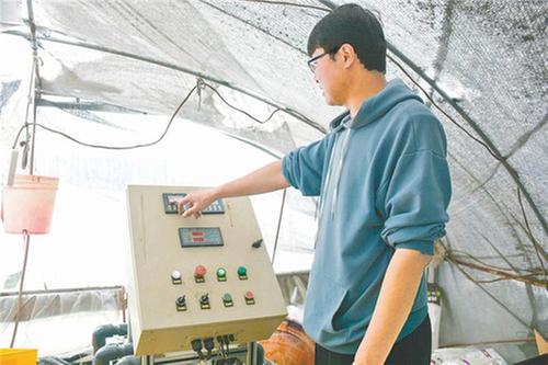 暢游完草莓園后探班員發(fā)現(xiàn),和傳統(tǒng)草莓園不同的是,倍安草莓園不僅在品種上“爭(zhēng)奇斗艷”,還在種植技術(shù)上不斷進(jìn)行創(chuàng)新和突破。在張世杰的帶領(lǐng)下,探班員來(lái)到了田間的一個(gè)小棚里,里面擺放了自動(dòng)化溫度檢測(cè)和澆水施肥機(jī)器。“這個(gè)機(jī)器上面會(huì)顯示澆水量和肥料酸堿度,比例泵還能幫助了解施肥比例,機(jī)器還能根據(jù)溫度自行調(diào)整澆水的時(shí)機(jī)。”張世杰一邊展示,一邊介紹道,這套智能水肥一體化節(jié)水灌溉系統(tǒng)和智能控溫設(shè)施從2021年開(kāi)始投入使用,明顯提升了工作效率,以前如果肥料比例沒(méi)調(diào)好,多了就會(huì)燒苗,低了效果又不佳,現(xiàn)在只需要這一個(gè)按鈕,就能調(diào)適好肥料濃度,機(jī)器再按比例自動(dòng)往里注水,然后一起灌溉進(jìn)地里,這樣用量會(huì)更加精確,對(duì)土壤的傷害也會(huì)更低。