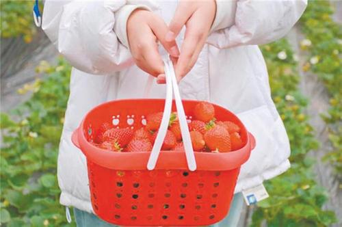 踏進(jìn)草莓種植大棚,一片翠綠中依偎著點(diǎn)點(diǎn)鮮紅,一些已經(jīng)成熟的草莓果實(shí)飽滿,迫不及待地“探出了頭”,還有些正在生長(zhǎng)的草莓白里透著粉紅,讓整個(gè)棚內(nèi)縈繞著濃郁的草莓氣息。游客們一人提著一個(gè)小紅籃,將一顆顆成熟的果實(shí)摘入籃中。前來(lái)采摘的王女士在棚內(nèi)逛了一會(huì)兒就不知不覺(jué)地摘了滿滿一大框,收獲了沉甸甸的果實(shí)后,她開(kāi)心地說(shuō):“我最喜歡粉色草莓,因?yàn)樗诟邢闾稹㈩伾勰?,滿足了我的少女心。”