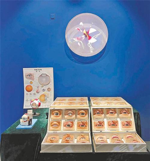 在學(xué)習(xí)眼球的構(gòu)造原理時,探班員注意到,科普館入口處,擺放著一套碩大的病眼模型。據(jù)了解,這套病眼模型之所以擺放在科普館的入口處,就是為了提醒觀者,如果不好好愛惜眼睛,就有可能罹患現(xiàn)場展示的各類眼部疾病。同時探班員發(fā)現(xiàn),在展示的病眼模型中,只有1只眼睛是正常的,其余的47只眼睛分別患有沙眼、青光眼、角膜炎、麥粒腫、白內(nèi)障等疾病,這些疾病大多數(shù)是由于過度使用眼睛或不注重眼部清潔衛(wèi)生導(dǎo)致的,因此大家在日常的學(xué)習(xí)工作中,一定要做好眼睛的休息和清潔工作。
