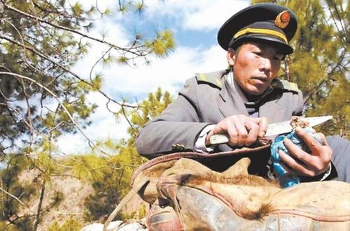 1985年,走了一輩子“馬班郵路”的父親把手中的馬韁繩交給王順友,并對他說:“父親老了,走不動了,這個班今后就交給你。”那年,王順友不到20歲。他繼續(xù)走著父親走過的路,一走就是30多年。王順友每走一個班要14天,一個月要走兩班。一年365天,他有330天走在郵路上。他這樣描述自己的生活:冬天一身雪,夏天一身泥,餓了吞幾口糌粑面,渴了喝幾口山泉水或啃幾口冰塊,晚上蜷縮在山洞里、大樹下或草叢中與馬相伴而眠,如果下雨,就得裹著雨衣在泥水中躺一夜。