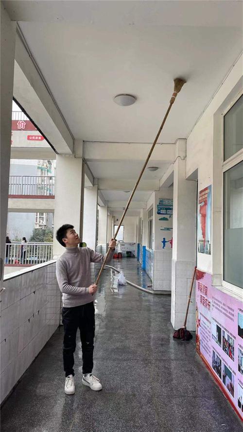 副班主任清掃樓道蛛網(wǎng)