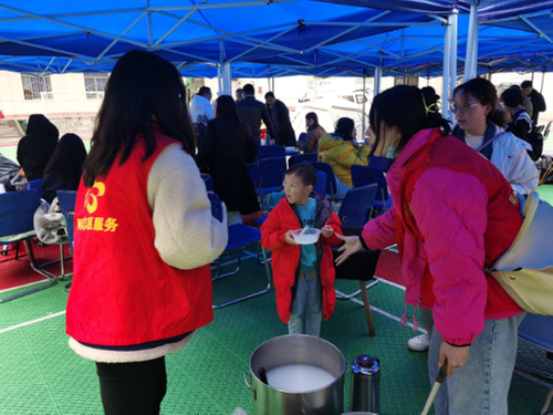 余震不斷的不眠之夜,人民群眾身心疲憊,為緩解驚慌情緒,中國電信阿壩分公司組織員工在保證自身安全的情況下,外出購買泡面、雞蛋、粽子、火腿腸等應急食品,并安排食堂為現場的受災群眾準備早餐,為大家提供熱粥。