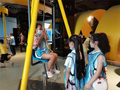 在四川科技館,同學(xué)們參觀并體驗了航空航天、機器人、虛擬世界、信息社會、數(shù)學(xué)、青少年科技園、瘋狂科學(xué)秀、機器人工作室等20個展區(qū)的相關(guān)交互式活動。“聲光體驗” “電磁探秘” “運動旋律”“生命奧秘”“數(shù)學(xué)魅力”五個主題展區(qū)的40余件展品與科學(xué)表演相結(jié)合,為同學(xué)們提供了體驗科學(xué)的情境,讓同學(xué)們在體驗中產(chǎn)生興趣,在探索中提出疑問,在發(fā)現(xiàn)中了解原理,在思考中啟迪智慧。