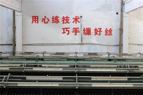 值得一提的是,在南充六合絲博園,不僅有靜靜述說著千年絲綢故事的歷史舊物,還有仍在生產(chǎn)運(yùn)作的織綢車間。梭織綢觀覽車間便是其中之一,該車間始建于1989年,現(xiàn)在仍保留著當(dāng)時(shí)的制絲工藝。8800平方米的車間里,安裝有梭織綢機(jī)160臺(tái)。據(jù)介紹,該車間全年可生產(chǎn)各類真絲綢緞160萬米,至今仍是全國(guó)生產(chǎn)規(guī)模最大的有梭織綢車間。