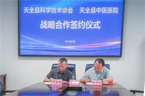 7月2日,雅安市天全縣科學技術(shù)協(xié)會與天全縣中醫(yī)醫(yī)院簽訂了戰(zhàn)略合作協(xié)議,將為全縣廣大科技工作者提供優(yōu)質(zhì)就醫(yī)咨詢服務(wù)。天全縣中醫(yī)醫(yī)院、縣科協(xié)相關(guān)負責人出席簽約儀式。