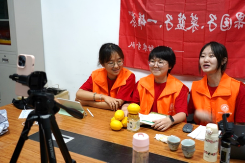 “安岳主要栽種檸檬品種為尤力克,經(jīng)過近百年的栽培馴化,選育形成了如今高產(chǎn)、優(yōu)質(zhì)、抗逆性強(qiáng)的株系……”近日,在資陽市安岳天禾檸豐農(nóng)資有限公司的會議室里,四川農(nóng)業(yè)大學(xué)“果園子”“菜籃子”“蜜罐子”產(chǎn)業(yè)增效實踐團(tuán)隊“酸檸甜農(nóng)”分隊的隊員正在快手平臺開展直播,通過對安岳的自然條件、歷史文化以及安岳檸檬的起源發(fā)展、用途特性等內(nèi)容的介紹,以達(dá)到文化傳播和檸檬推廣的雙重作用。直播過程中還穿插了“生吃檸檬片”、“現(xiàn)場泡檸檬蜂蜜水”等趣味活動,觀眾紛紛和主播提問交流。