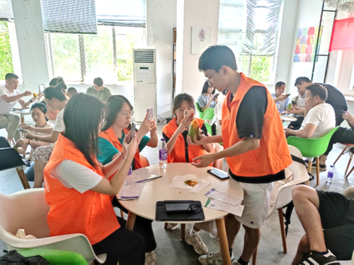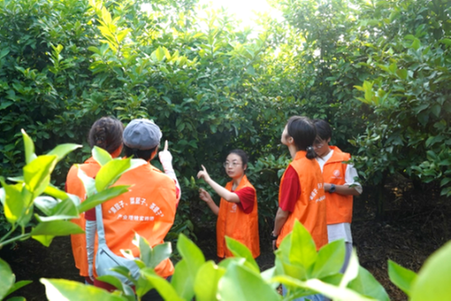 7月10日,“酸檸甜農(nóng)”分隊的隊員們帶著早已準(zhǔn)備好的技術(shù)手冊給當(dāng)?shù)氐臋幟屎献魃缲?fù)責(zé)人和果農(nóng)開展了一場別開生面的檸檬病蟲害防治培訓(xùn)會。“在檸檬園一旦發(fā)現(xiàn)黃脈病就要立即砍掉果樹并做好消毒殺菌工作,避免發(fā)生大規(guī)模傳染。”隊員蔡欣瑤講解得有模有樣,果農(nóng)們聽得津津有味,不時鼓掌點頭表示肯定。