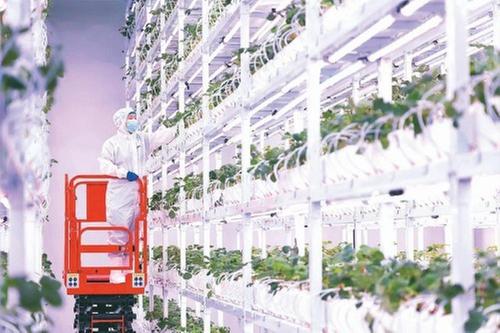 據(jù)了解,該座智慧工廠總面積為2300平方米,其中對草莓進行立體栽培的車間共有5個,年種植草莓株數(shù)可達13萬余株,每日草莓產(chǎn)量200千克,全年產(chǎn)量73噸,是傳統(tǒng)地栽草莓的30~40倍,可實現(xiàn)全年無間斷高效生產(chǎn)。