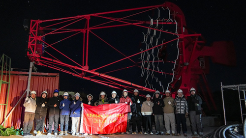 第二臺(tái)望遠(yuǎn)鏡(定型望遠(yuǎn)鏡)在四川天府宇宙線研究中心安裝現(xiàn)場(chǎng)