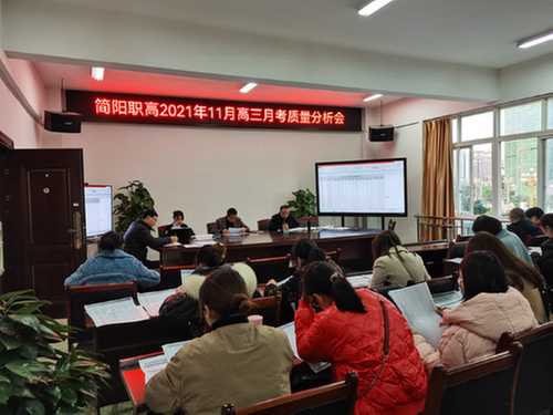 為深入分析并明確下一階段工作開展的方向,11月17日,簡陽市高級職業(yè)中學召開了11月高三月考質(zhì)量分析會。學校黨總支書記、校長張敏,黨總支委員、副校長蔣學文,教務處主任黃薈如、教務處副主任鐘孫國、黃勇,專業(yè)部長、副部長、所有高三對口升學班的班主任及科任教師參加會議。