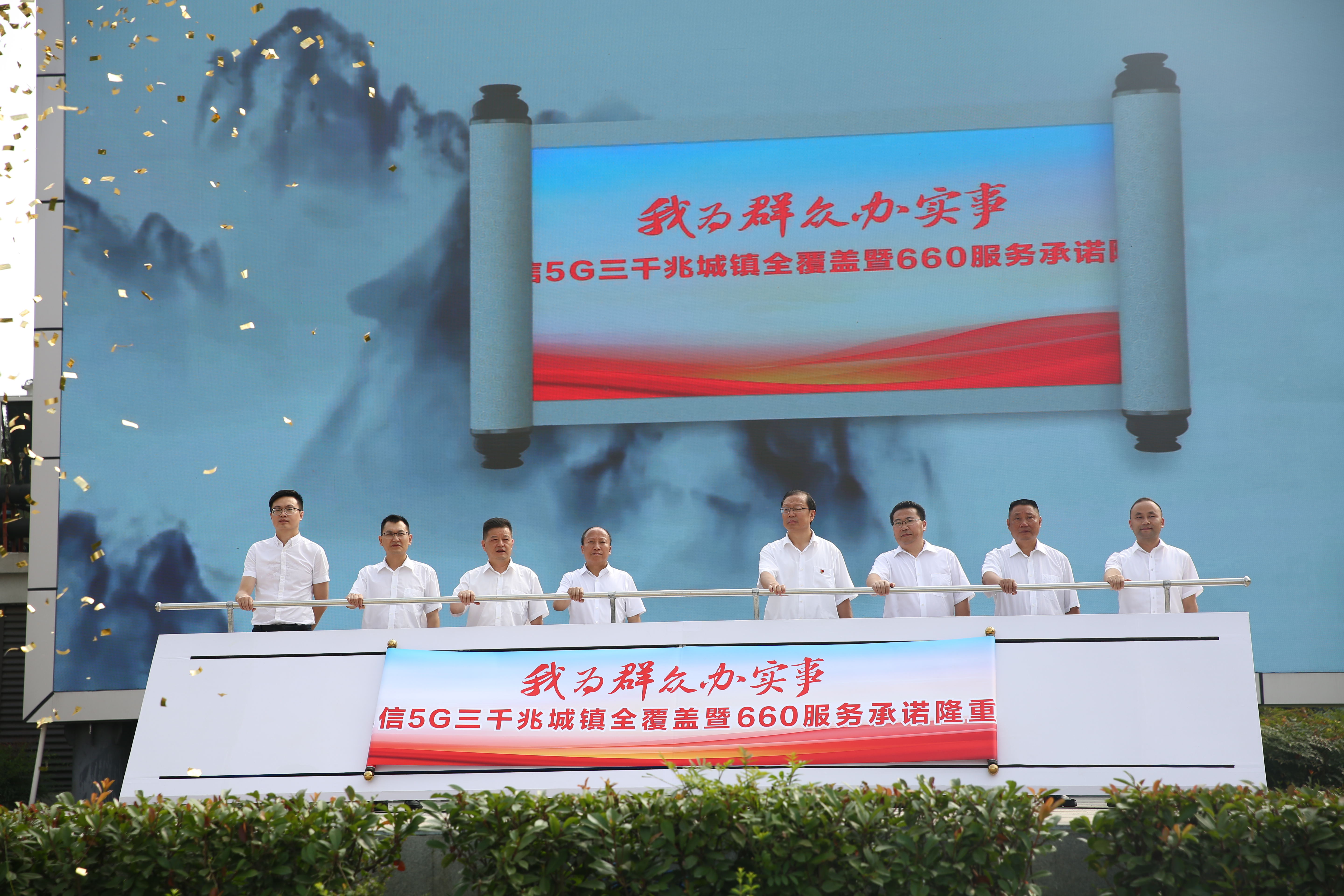 7月7日,由中國電信眉山分公司舉辦的“我為群眾辦實事——中國電信5G三千兆城鎮(zhèn)全覆蓋暨660服務(wù)承諾發(fā)布會”在激情廣場舉行。市人大常委會副主任宋仕祥、副市長冉登祥、市政協(xié)副主席鐘維欽出席會議并為發(fā)布會致辭,為眉山電信先鋒服務(wù)示范隊、眉山電信裝維最佳保障團隊授旗。市經(jīng)信局、市國資委、市住建局、市市場監(jiān)管局相關(guān)負責(zé)人、各區(qū)縣政府相關(guān)領(lǐng)導(dǎo)及各界來賓參加發(fā)布會。