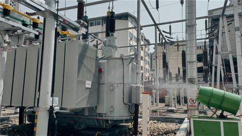 電力工人使用霧炮機(jī)對(duì)主變進(jìn)行降溫