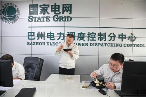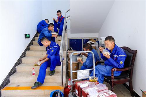 電力工人在崗位上用餐