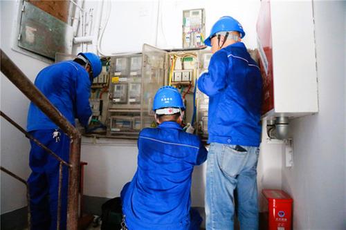電力工人正在搶修居民樓用電故障