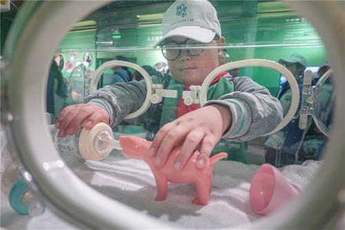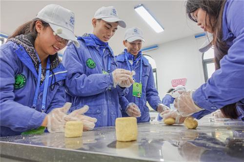 在中國大熊貓保護研究中心雅安基地,同學們開啟了一場別致的研學之行。在熊貓園區(qū),科普老師帶領同學們探秘了大熊貓的生活環(huán)境和生活習性。同學們化身小小飼養(yǎng)員,親身體驗為熊貓打掃圈舍,近距離觀察了解了大熊貓的日常行為與情緒變化,一睹了大熊貓的憨態(tài)萌樣。同學們通過提問、觀察的互動方式,了解國寶大熊貓的名字由來以及成長過程中的相關知識;在科普教研室,科普老師詳細講解了大熊貓的飲食起居,以及熊貓美食“窩窩頭”的成分及制作流程,同學們在科普老師的帶領下親手制作了窩窩頭,收獲了別樣的樂趣;在熊貓科普館,大家還一起觀看了熊貓電影和參觀了熊貓科普館,走進大熊貓的前世今生,了解大熊貓的起源發(fā)現(xiàn)、科研、繁育、保護大熊貓等。讓同學們更加深入地了解到大熊貓的生活狀態(tài)和保護工作的重要性?;顒又泄舶l(fā)放科普文化衫、科普宣傳帽、科普背包等100余份。