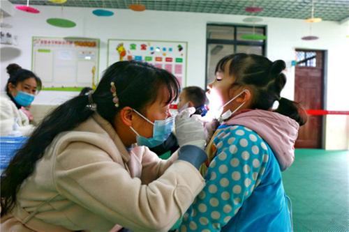 冬季是流感爆發(fā)的高峰期,連日來,巴中市通江縣實(shí)驗(yàn)小學(xué)附屬幼兒園在做好疫情常態(tài)化防控的前提下,堅(jiān)持晨檢制度,督促幼兒保持良好個(gè)人衛(wèi)生習(xí)慣,及時(shí)預(yù)防和控制流感的發(fā)生。圖為通江縣實(shí)驗(yàn)小學(xué)附屬幼兒園老師給幼兒進(jìn)行咽部檢查。