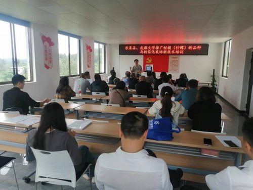 成都大學(xué)水果栽培與加工團隊王建輝研究員,針對川中丘陵柑橘產(chǎn)區(qū)存在的施肥過量、施肥方式不合理、管理粗放、農(nóng)藥濫用、肥藥利用率低等現(xiàn)象,并由此帶來的生態(tài)環(huán)境污染及柑橘果品質(zhì)量安全等問題,圍繞柑橘新品種、輕簡化栽培技術(shù),開展了丘陵果園的宜機化節(jié)本增效技術(shù)、水肥一體化智能控制技術(shù)、果園廢棄物資源化利用技術(shù)、柑橘全生長周期的病蟲草害綠色綜合防控等技術(shù)培訓(xùn)。