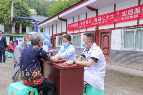 在活動現(xiàn)場,三家單位的幫扶干部們向老人們發(fā)放親手制作的重陽糕點,與老人們一起分享節(jié)日的喜悅,并用通俗易懂、生動活潑的語言向大家宣講習(xí)近平總書記來川視察重要指示精神和四川省第十二次黨代會精神,宣傳新時代黨和國家事業(yè)取得的巨大成就以及這十年四川改革發(fā)展的輝煌變化,引導(dǎo)大家“吃水不忘挖井人”,永遠感黨恩、聽黨話、跟黨走。同時,安排理發(fā)師為村民提供免費理發(fā)服務(wù);組織醫(yī)護人員為村民進行義診和健康教育宣傳,開展血壓、血糖、心肺等多項健康檢查。對高齡老人、腿腳不便的老人,專門安排理發(fā)師和醫(yī)護人員上門提供服務(wù)。