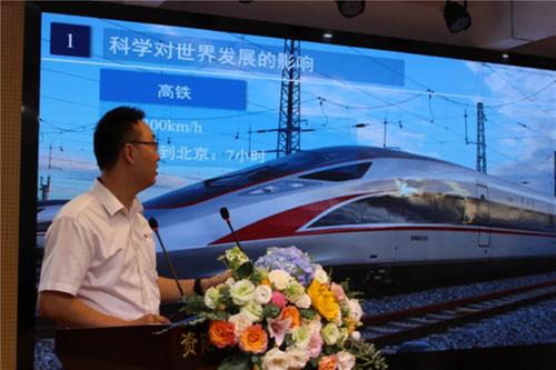 現(xiàn)場(chǎng),中車資陽機(jī)車有限公司工程師李連凱為同學(xué)們帶來了“傳播科學(xué)家精神,筑夢(mèng)星辰大海”主題宣講,介紹了我國高鐵發(fā)展歷史、現(xiàn)狀,并結(jié)合自己與火車的故事,講述自己勇于探索、勤奮鉆研、不計(jì)名利,獻(xiàn)身科學(xué)的生動(dòng)事跡,分享了自己在探索科技路上的“三好”理念——好學(xué)、好辯、好勝,在孩子們心中播撒科學(xué)報(bào)國、科學(xué)強(qiáng)國的種子。大大激發(fā)了青少年學(xué)生的科學(xué)興趣,啟發(fā)創(chuàng)新意識(shí),提升科學(xué)素質(zhì)。