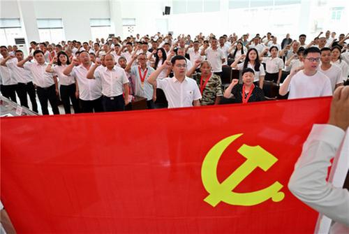 當(dāng)天,東興區(qū)順河鎮(zhèn)組織全鎮(zhèn)黨員歡聚一堂,以表彰“兩優(yōu)一先”、頒發(fā)“光榮在黨50年”紀念章、重溫入黨誓詞、講黨課等豐富多樣的形式,歡慶黨的生日,厚植愛黨情懷,勉勵全體黨員牢記初心使命,堅定理想信念,踐行黨的宗旨,與群眾想在一起,干在一起,以貢獻順河高質(zhì)量發(fā)展的全新業(yè)績,努力為黨和人民爭取更大光榮。