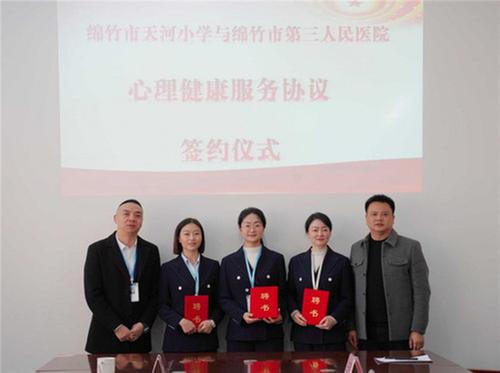 為進一步提升綿竹市兒童青少年心理健康水平,為兒童青少年心理健康教育工作提供專業(yè)支持,11月20日,綿竹市第三人民醫(yī)院與綿竹市天河小學成功舉行了心理健康服務簽約儀式,標志著雙方在兒童青少年心理健康領(lǐng)域邁出了堅實的一步。