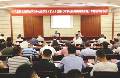 為深入學(xué)習(xí)貫徹習(xí)近平總書記在中央政治局第二十次集體學(xué)習(xí)時的重要講話精神,9月11日,廣安市武勝縣召開了縣委中心組學(xué)習(xí)(擴大)會議,會議邀請四川大學(xué)法學(xué)院教授、碩士生導(dǎo)師張金海作《民法典》專題輔導(dǎo)??h委書記譚云主持會議并講話。