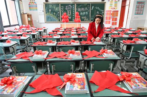 2025年2月10日,四川省內(nèi)江市第十三小學(xué)的老師正在精心布置教室,迎接新學(xué)期學(xué)生返校。