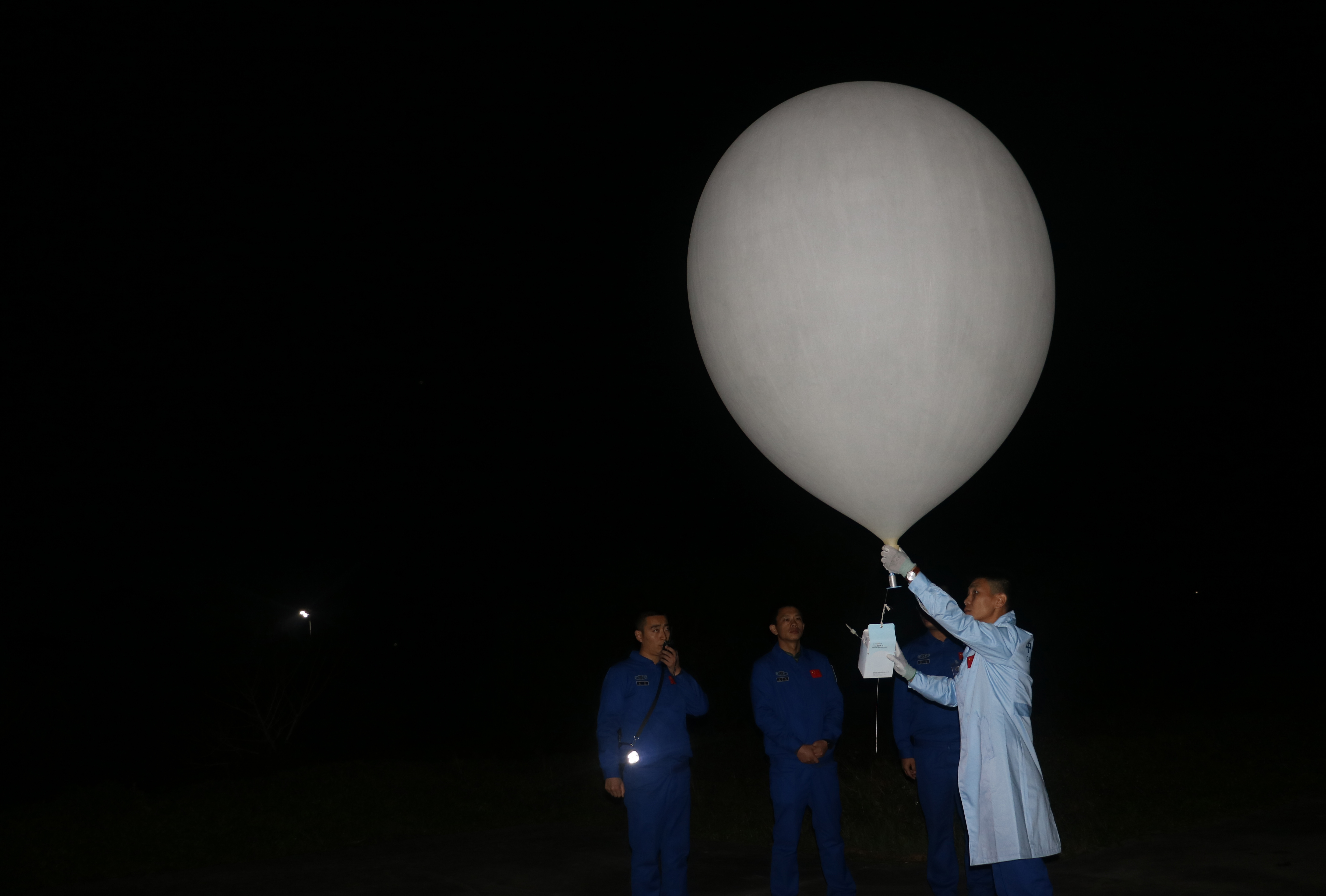 凌晨1時(shí)許,增加的探空氣球從放球員仙豪手中準(zhǔn)時(shí)放出。