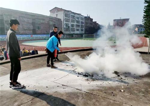 學(xué)生在操場集合完畢后,班主任立即清點(diǎn)了人數(shù),并把班級情況報告給總指揮。接著由學(xué)校肖主任示范了滅火器的正確操作方法,并讓學(xué)生代表向?qū)W生展示了滅火器的正確使用方法。