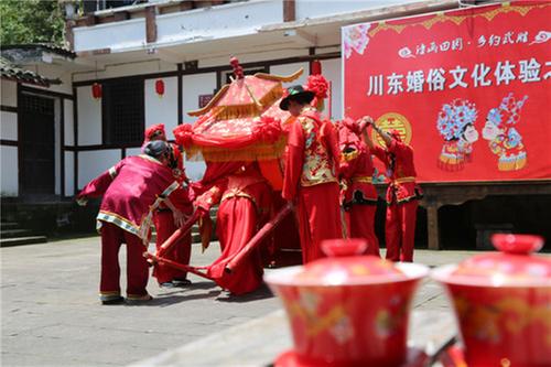 高家院子禮俗文化底蘊(yùn)深厚,該村村委會(huì)組織留守村民,組建演出隊(duì)伍,編排文藝節(jié)目,常態(tài)化開(kāi)展以禮俗為主題的院落文化展演。藝術(shù)節(jié)期間,川東婚俗文化體驗(yàn)活動(dòng)將在這里上演,游客可以在院子里觀看坐歌堂、迎親、拜堂、入洞房、鬧房等傳統(tǒng)婚俗節(jié)目,還可以當(dāng)新娘、坐花轎、行拜師禮……體驗(yàn)川東禮俗文化,傳承忠孝禮儀美德。