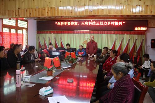 此外,寶興縣科協(xié)工作人員和志愿者向種植戶分發(fā)了“天府科技云”平臺(tái)的使用手冊(cè),并指導(dǎo)他們?nèi)绾卫迷撈脚_(tái)獲取科學(xué)種植信息,解決實(shí)際問(wèn)題。