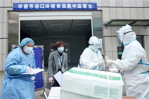 1月15日,隨著廣安華鎣市“冷鏈食品集中監(jiān)管倉”正式投入使用,該市“集中監(jiān)管倉+庫長制”模式日漸完善,冷鏈物流疫情“隔離網(wǎng)”和節(jié)日食品安全“防火墻”也隨之織密織牢。圖為1月29日,在廣安華鎣市冷鏈食品集中監(jiān)管倉,工作人員在對剛剛運回的進口冷鏈食品按流程進行核酸檢測前的消毒、采樣、登記,嚴防疫情境外輸入。