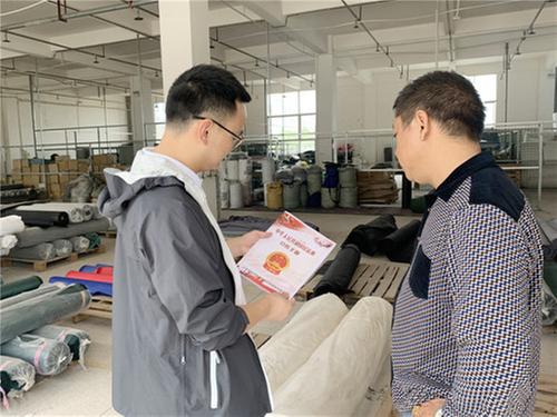 為營造濃厚的法治宣傳氛圍,提升轄區(qū)企業(yè)知法守法、依法經(jīng)營的能力,在園區(qū)內(nèi)形成良好的法治環(huán)境,9月24日,廣安市前鋒工業(yè)園區(qū)管委會普法志愿者深入旭輝聚氨酯有限公司、惠華皮具等多家企業(yè)開展《民法典》宣傳活動。