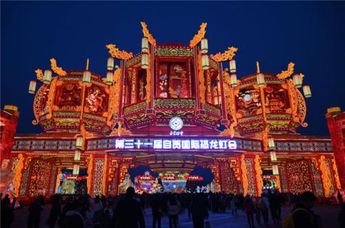 1月15日晚,第31屆自貢國(guó)際恐龍燈會(huì)在四川省自貢市中華彩燈大世界進(jìn)行亮燈試展,吸引不少游客前來(lái)賞燈游園。