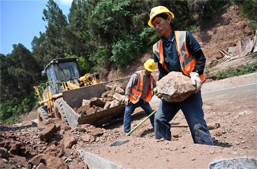 5月23日,在內(nèi)江市東興區(qū)白合鎮(zhèn)破馬村,筑路工人進(jìn)行碎石墊層施工作業(yè),全力推進(jìn)內(nèi)吳路改造項目工程進(jìn)度,力爭早日實現(xiàn)竣工通車目標(biāo)。