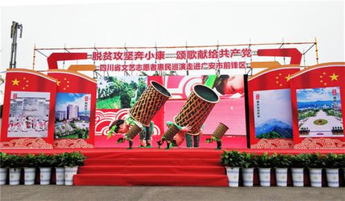 “好安逸哦!在家門口都可以看演出,真的是太精彩了。”家住廣安市前鋒區(qū)代市鎮(zhèn)的李女士高興的說。10月12日,由四川省文學藝術界聯(lián)合會和中共廣安市委宣傳部主辦,四川省文藝志愿者協(xié)會、廣安市文學藝術界聯(lián)合會、中共廣安市前鋒區(qū)委員會、廣安市前鋒區(qū)人民政府承辦的“脫貧攻堅奔小康 頌歌獻給共產(chǎn)黨”——四川省文藝志愿者惠民巡演活動在廣安市前鋒區(qū)代市鎮(zhèn)星城大道上隆重開演。