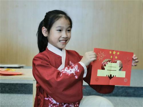 “今天非常開心,我覺得剪紙很有趣,我很樂意通過這種方式把祖國大地上的美好展現(xiàn)出來,祝福我們的祖國繁榮富強。”第一次的剪紙體驗給陳珂宇小朋友留下了深刻印象。