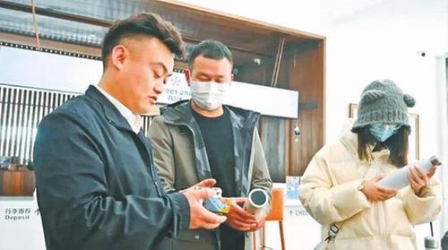 劉朋雨(左一)向顧客介紹文創(chuàng)產(chǎn)品。
