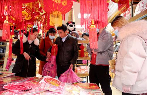 2021年是農(nóng)歷辛丑牛年,帶“牛”元素的燈籠、福字、布偶和紅包成為顧客首選。市民通過貼春聯(lián)、掛燈籠等方式,營造出新年的氛圍,不僅扮靚了自己的小家,也弘揚了中國的傳統(tǒng)文化。