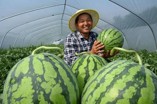 5月17日,在內(nèi)江市東興區(qū)椑木鎮(zhèn)月池村,農(nóng)民在收獲大棚西瓜。