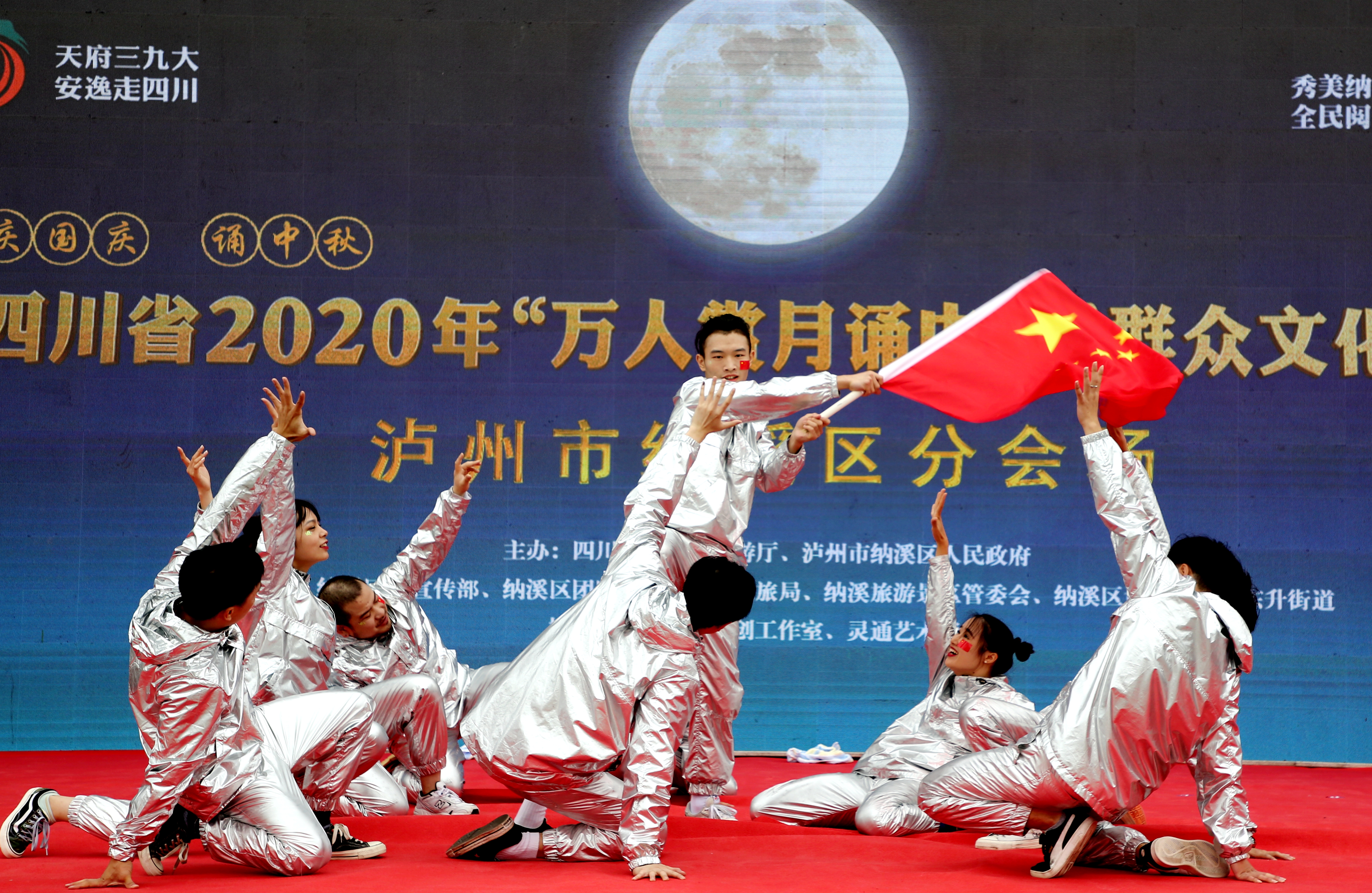 當(dāng)日,四川省2020年“萬(wàn)人賞月誦中秋”群眾文化活動(dòng)——納溪分會(huì)場(chǎng)活動(dòng)在長(zhǎng)濕公園傾情上演,提前為廣大人民群眾送去“雙節(jié)”祝福。