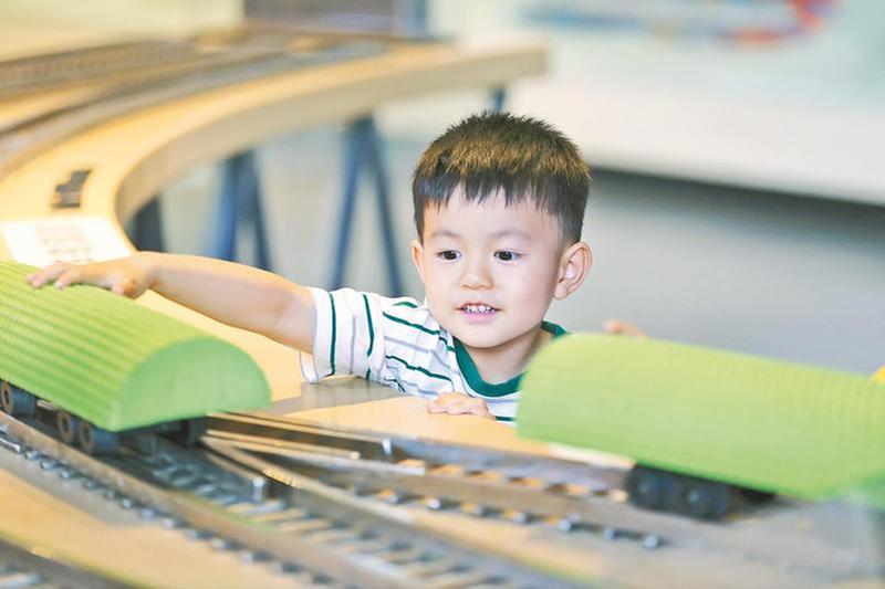 5.在“交通科技”展廳,小朋友在學(xué)習(xí)火車軌道原理。